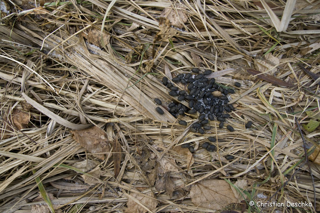Die Losung der Rehe erinnert im Winter an Kaffeebohnen. Im Sommer besteht sie eher aus unregelmäßigen Klumpen.