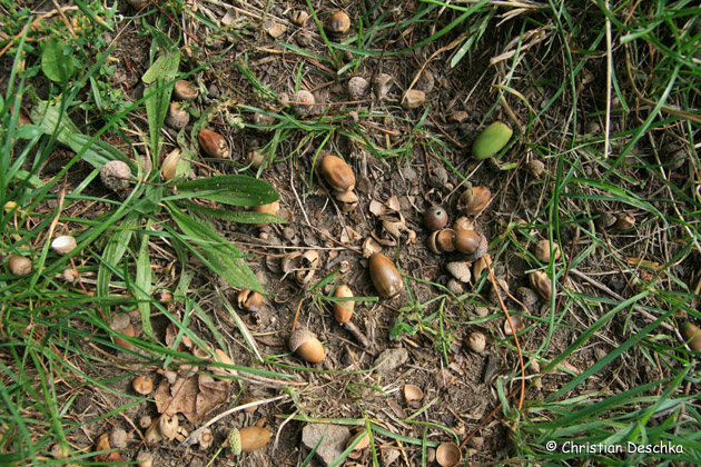 Rehe bereiten sich schon im Herbst auf den langen, kalten Winter vor, indem sie sich eine Feistschicht anfressen. Eicheln (und Bucheckern) sind hierfür ein besonders beliebtes, natürliches Kraftfutter.