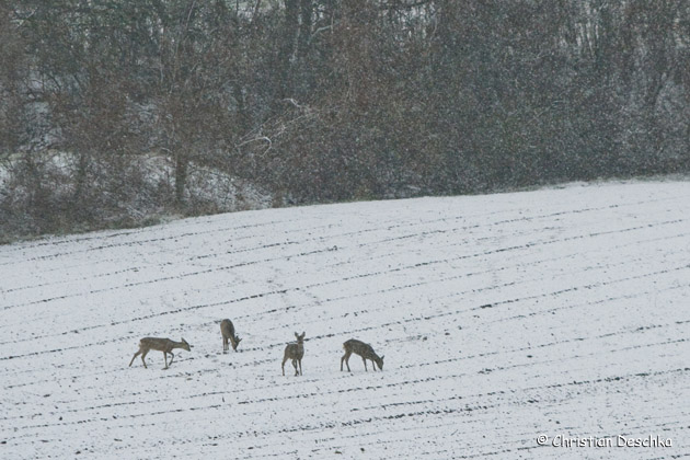 Auch auf landwirtschaftlichen Flächen (Raps, Wintergetreide) finden Rehe Pflanzen, die sie gerne äsen.