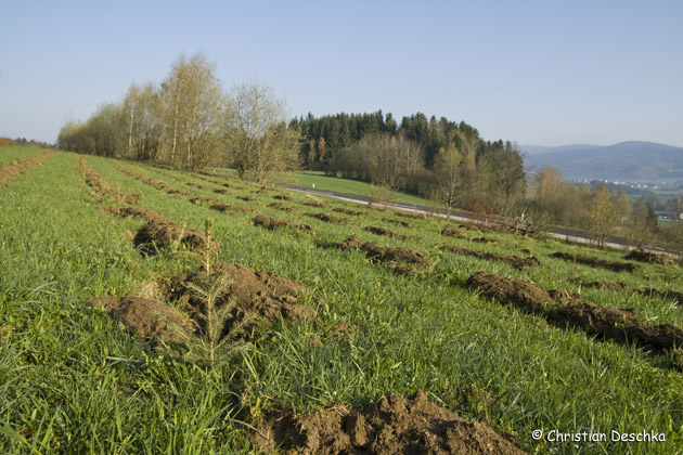 Es ist unverständlich, dass selbst heute noch Wiesen mit in Reih und Glied gepflanzten Fichten aufgeforstet werden.
