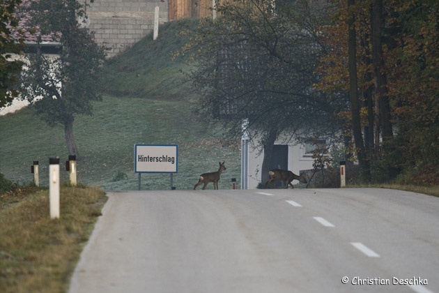 ... bevor es die Fahrbahn kreuzt. Kollisionen mit Wildtieren verursachen alljährlich hohen Sach- und Personenschaden.