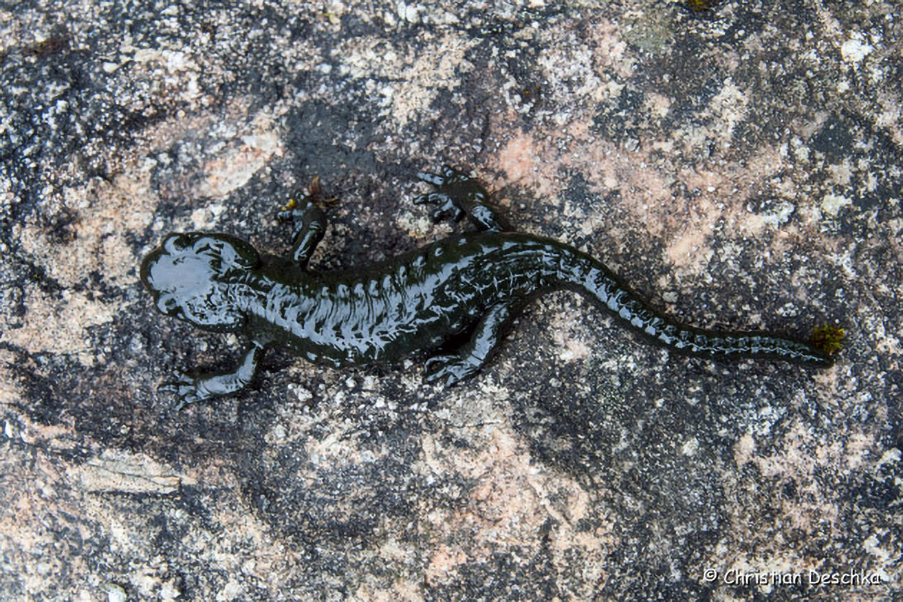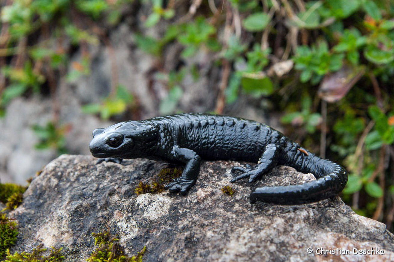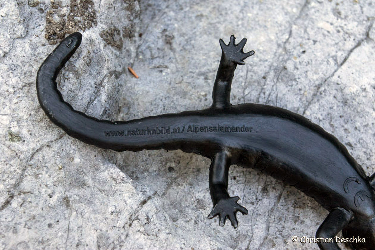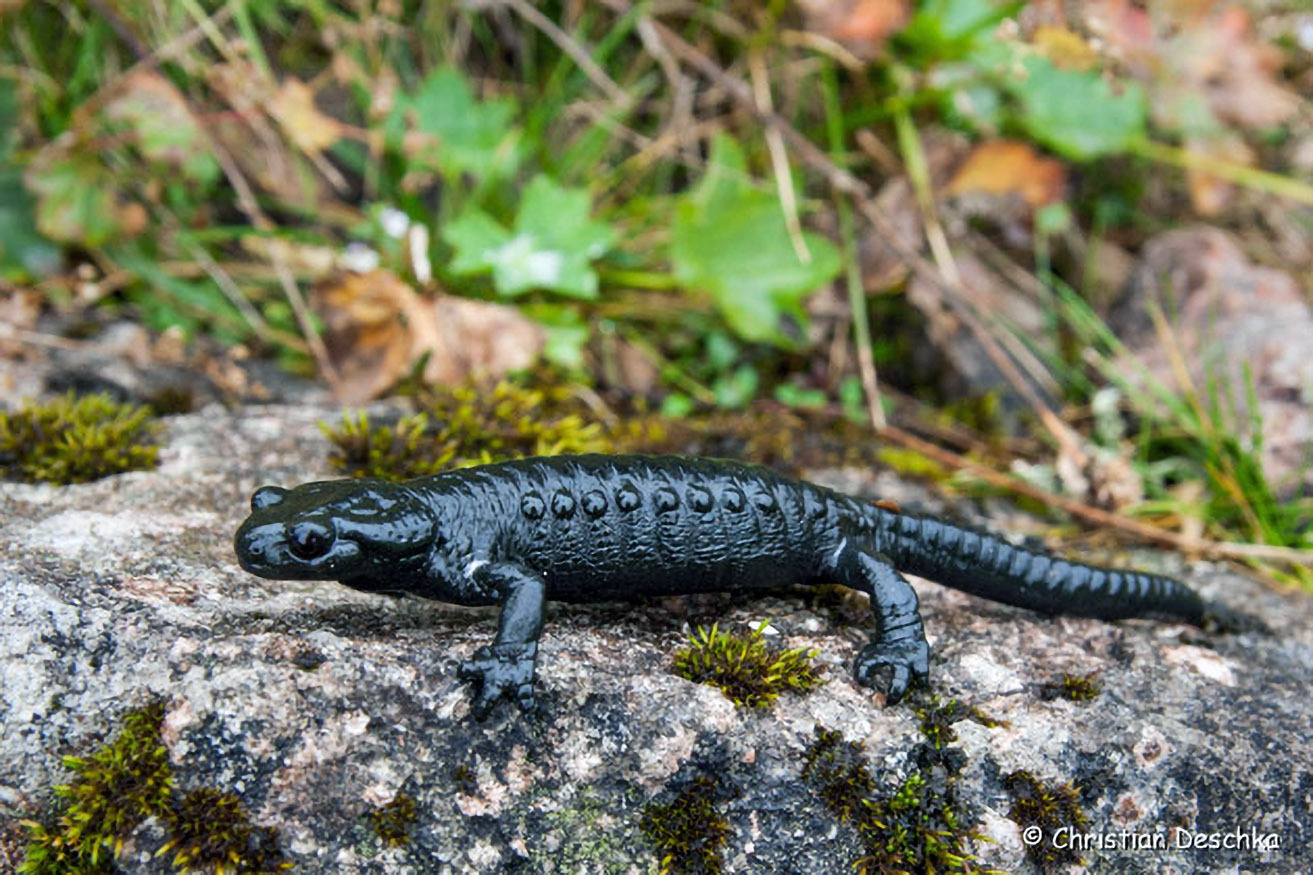 Dem an kühle Temperaturen angepassten Alpensalamander macht auch der globale Klimawandel und die damit verbundene überdurchschnittliche Erwärmung im Alpenraum zu schaffen.