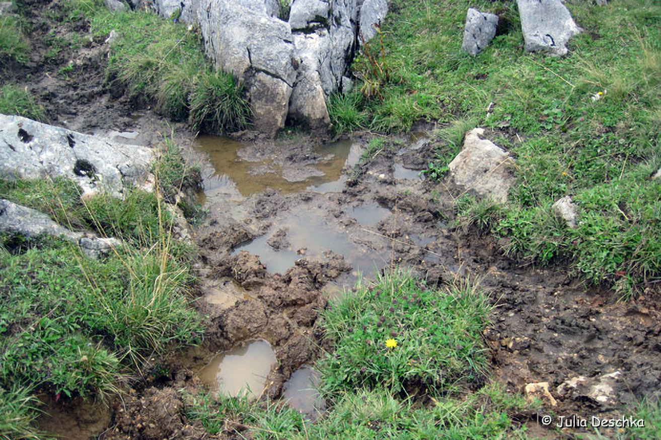 Übermäßige Beweidung durch Rinder, Schafe, ... und Gülleausbringung (Verätzungsgefahr!) kann sich negativ auf die Alpensalamanderbestände auswirken. Eine extensive Bewirtschaftung und der Verzicht auf Sommerdüngung mit Gülle helfen dem Alpensalamander.
