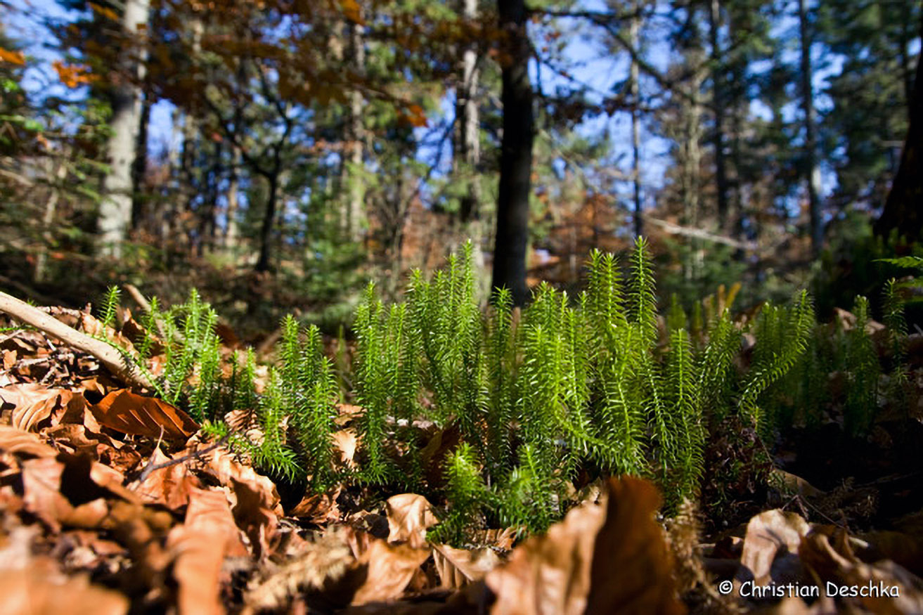 Auch am Wegrand kann man Interessantes entdecken - beispielsweise Heidelbeeren oder diesen Bärlapp. Bärlappe sind moosähnliche Pflanzen ohne Blüten.