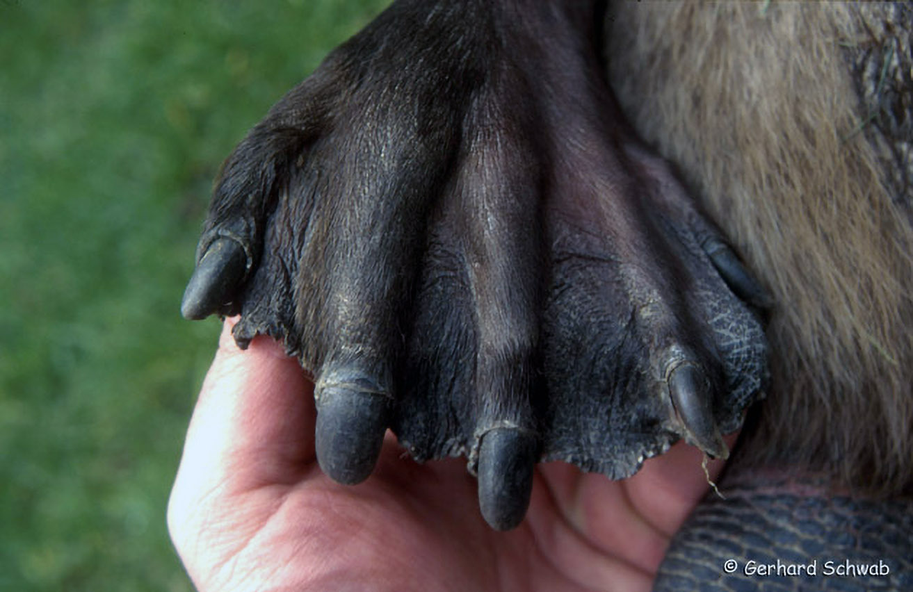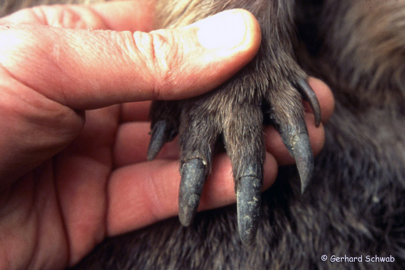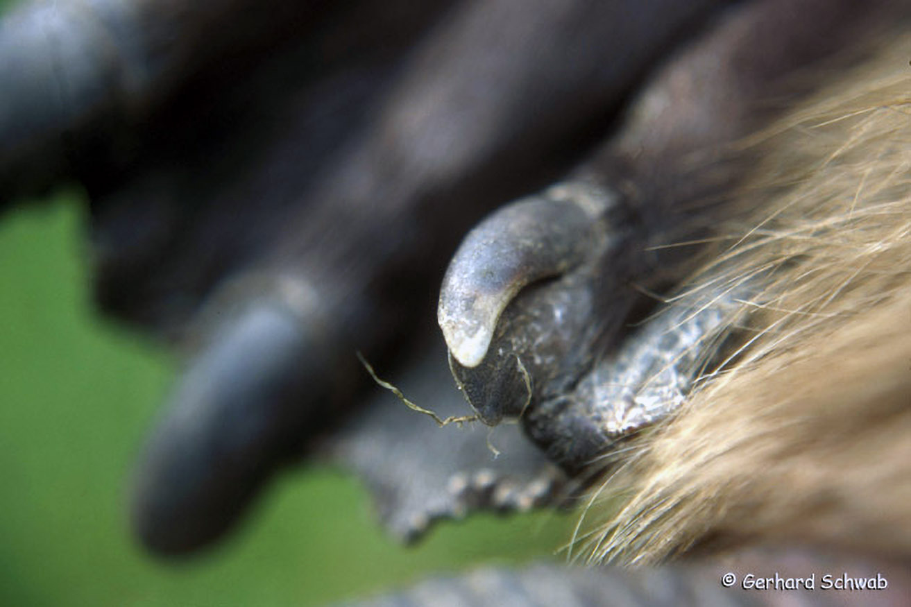 Die zweite Zehe der Hinterfüße weist eine zweiteilige "Putzkralle" auf, die zur Fellpflege (Bürsten, Entfernen von Zecken, ...) eingesetzt wird.