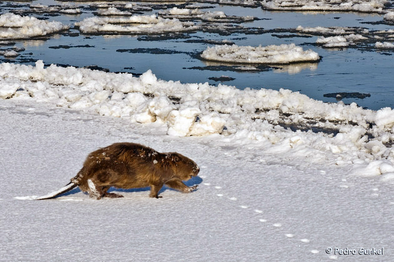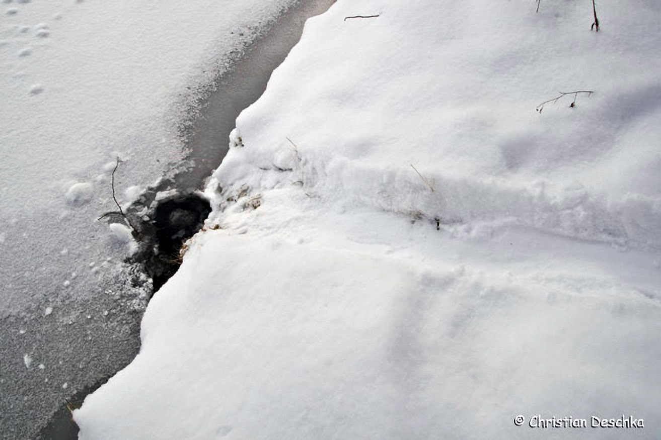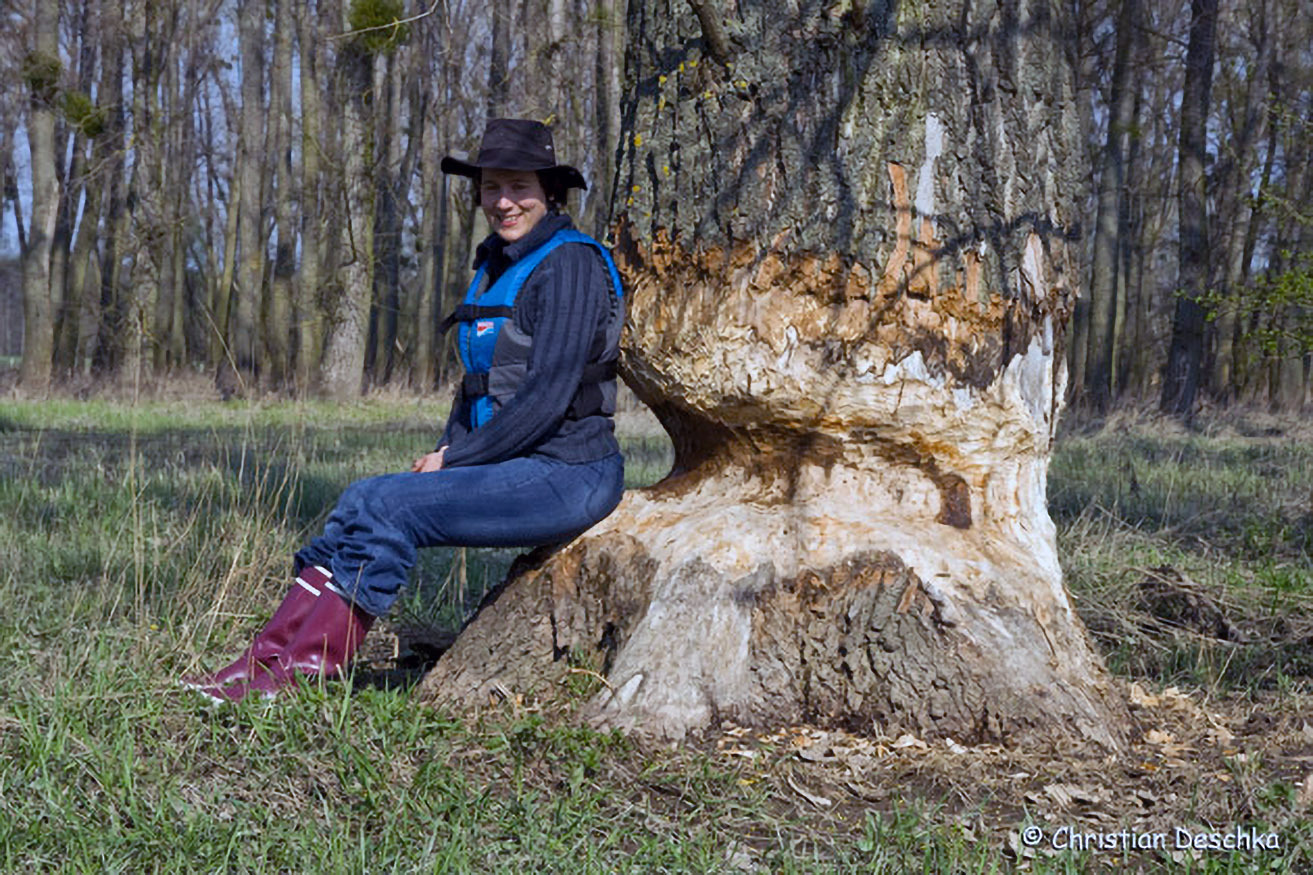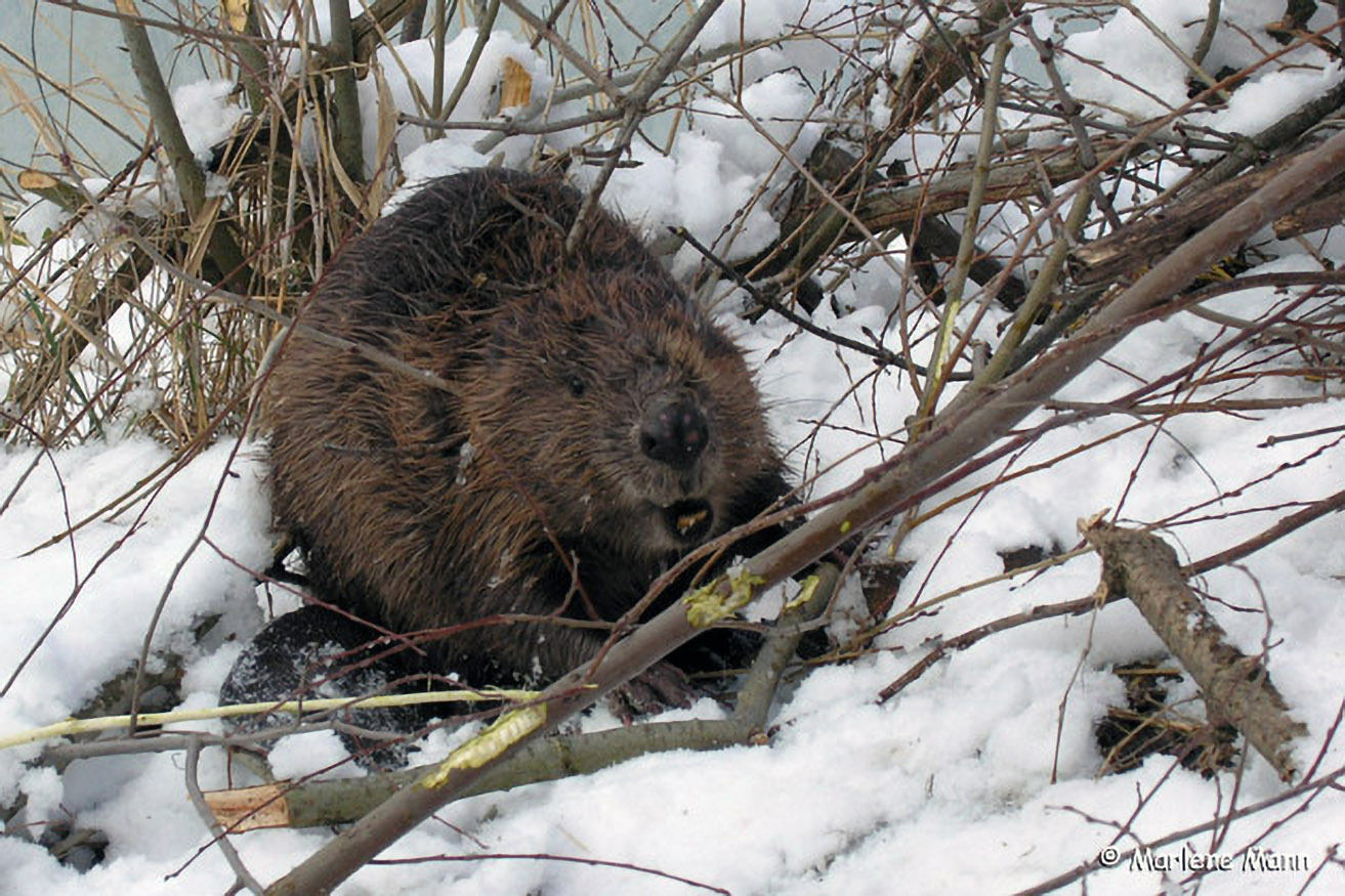 Den meist nachtaktiven Biber kann man nur ganz selten beobachten. Dafür sind seine Spuren im Winter kaum zu übersehen. Besonders auffällig sind die sanduhrförmig angenagten Bäume mit den mehrere Zentimeter großen Spänen darunter.
