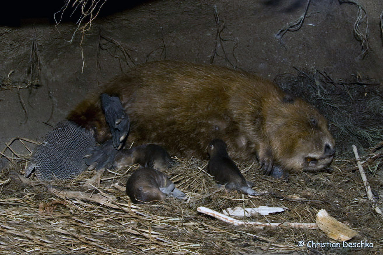 Biber bekommen in der Regel im April/Mai 2-4 Junge, die zwei Monate lang gesäugt werden. Sie werden auch im Anschluss noch einige Monate lang von den Eltern betreut.