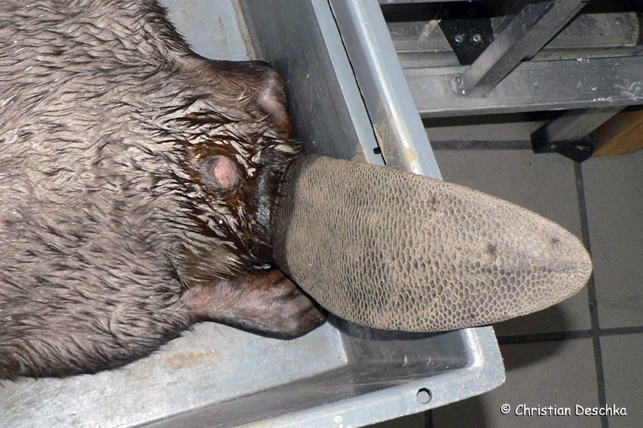 Als Antrieb beim Schwimmen dienen vor allem die großen Hinterfüße mit Schwimmhäuten zwischen den Zehen.