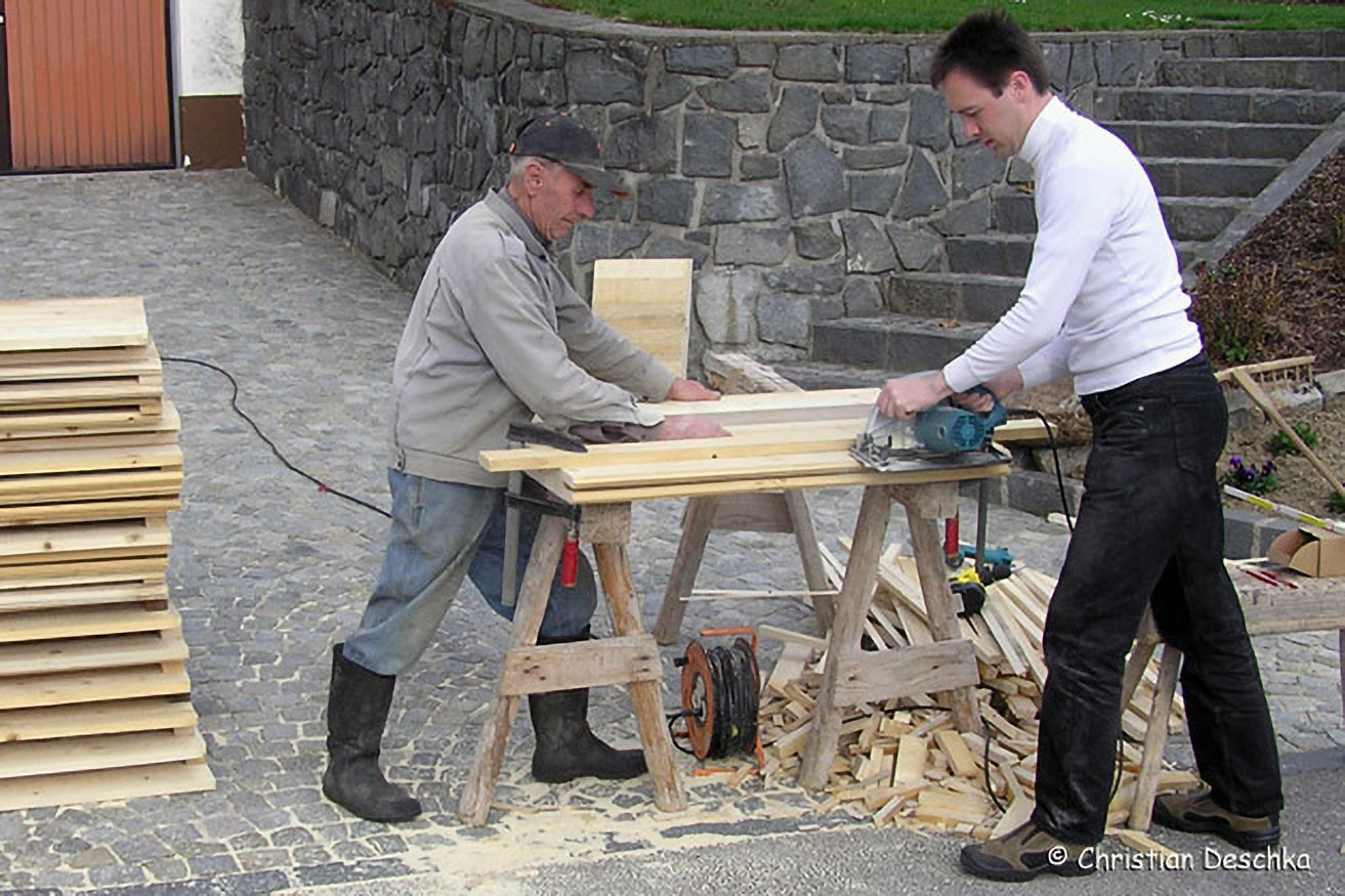 Im Zuge unseres Projektes haben wir zahlreiche Fledermauskästen selbst gebaut und angebracht. Bestens bewährt haben sich so genannte "Fledermausbretter". Das sind spaltenförmige Fledermauskästen aus sägerauen Fichtenbrettern.