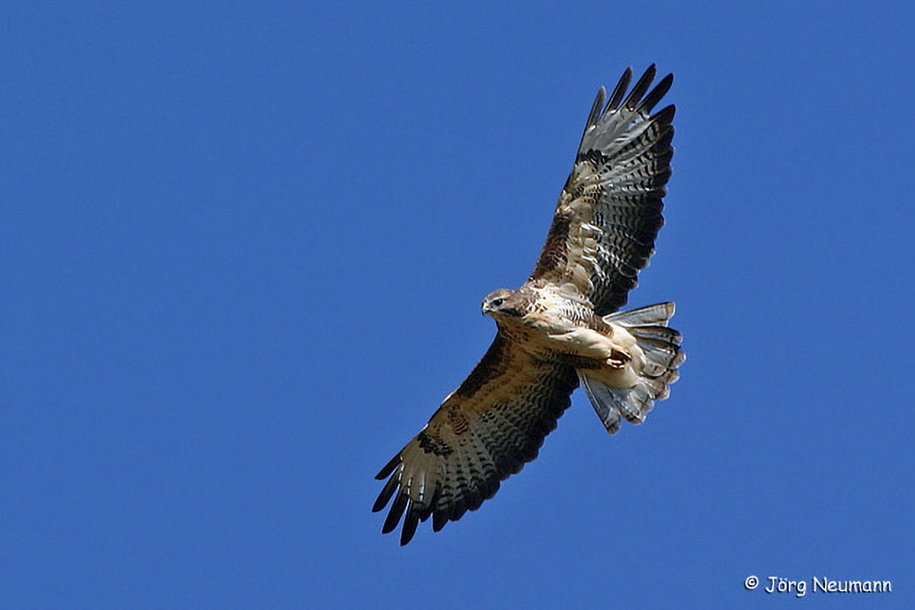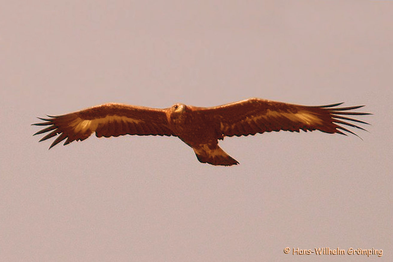 Auch dieser König der Lüfte ist wieder gelegentlich zu beobachten! Der Seeadler ist an seiner enormen Spannweite (2,2 m!) und dem keilförmigen, bei Altvögeln weißen Schwanz erkennbar. Jungvögel sind einheitlich dunkel gefärbt.