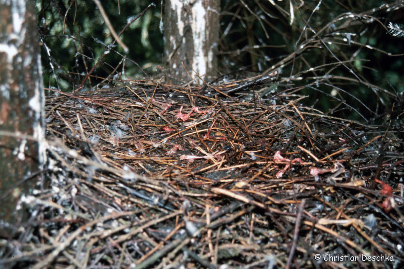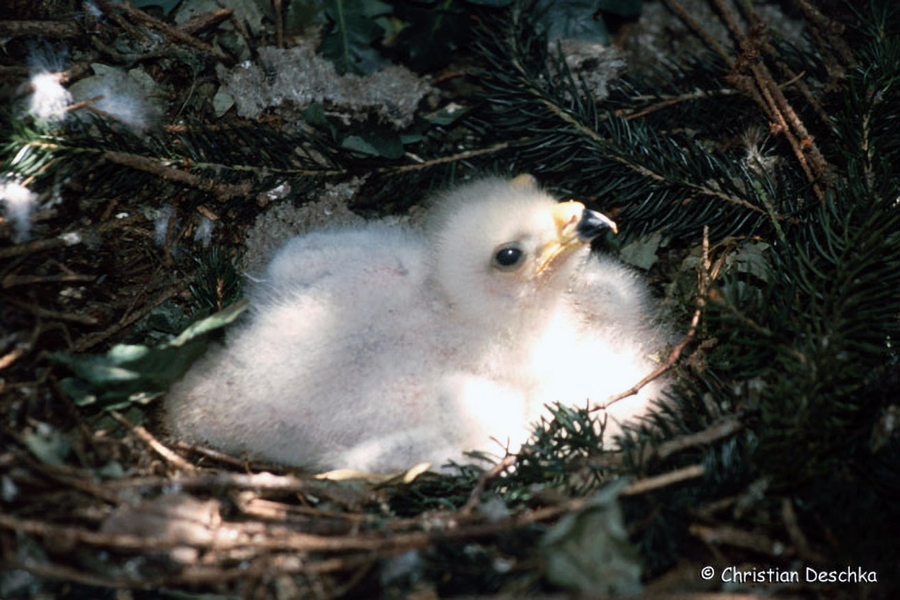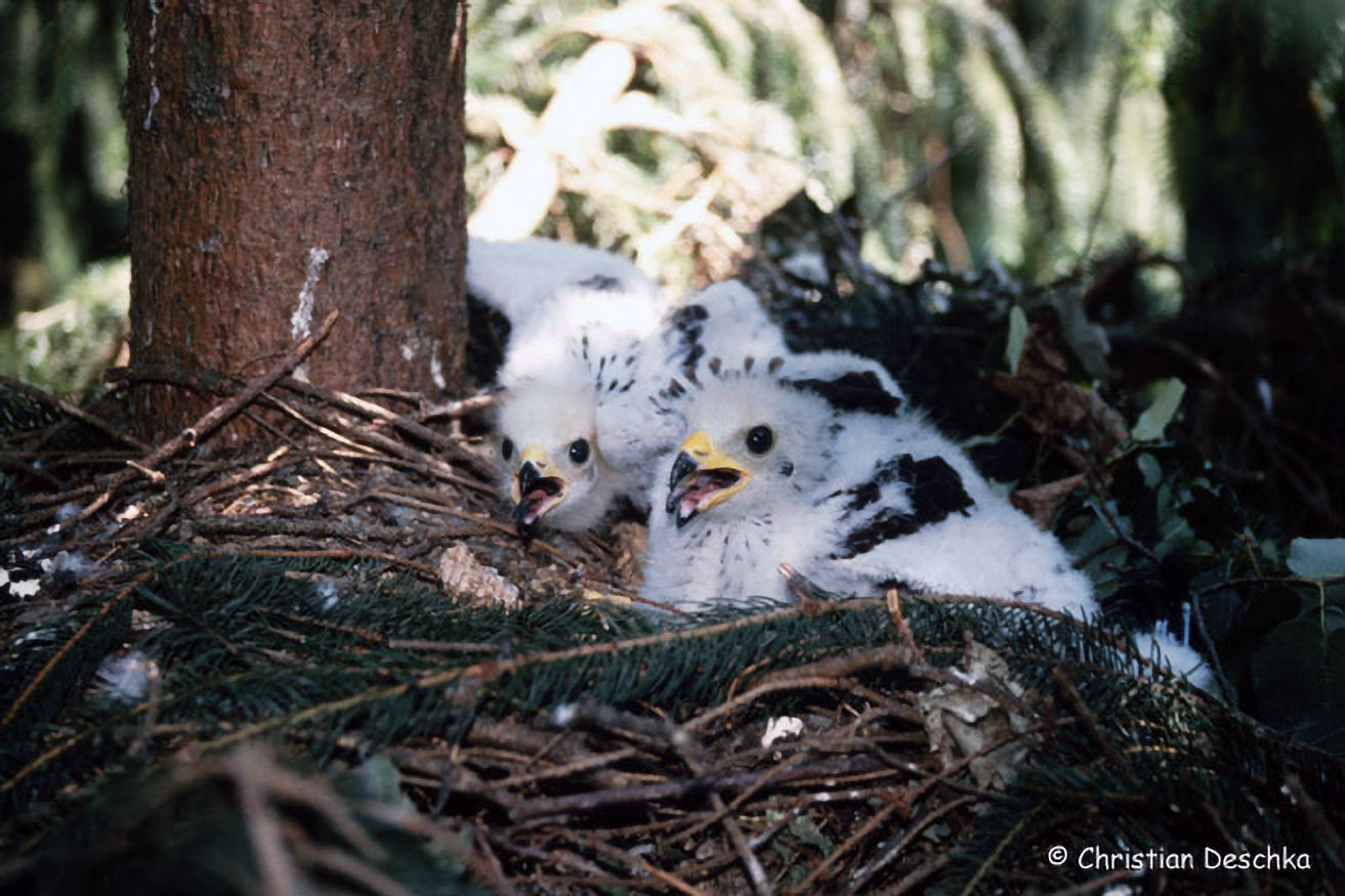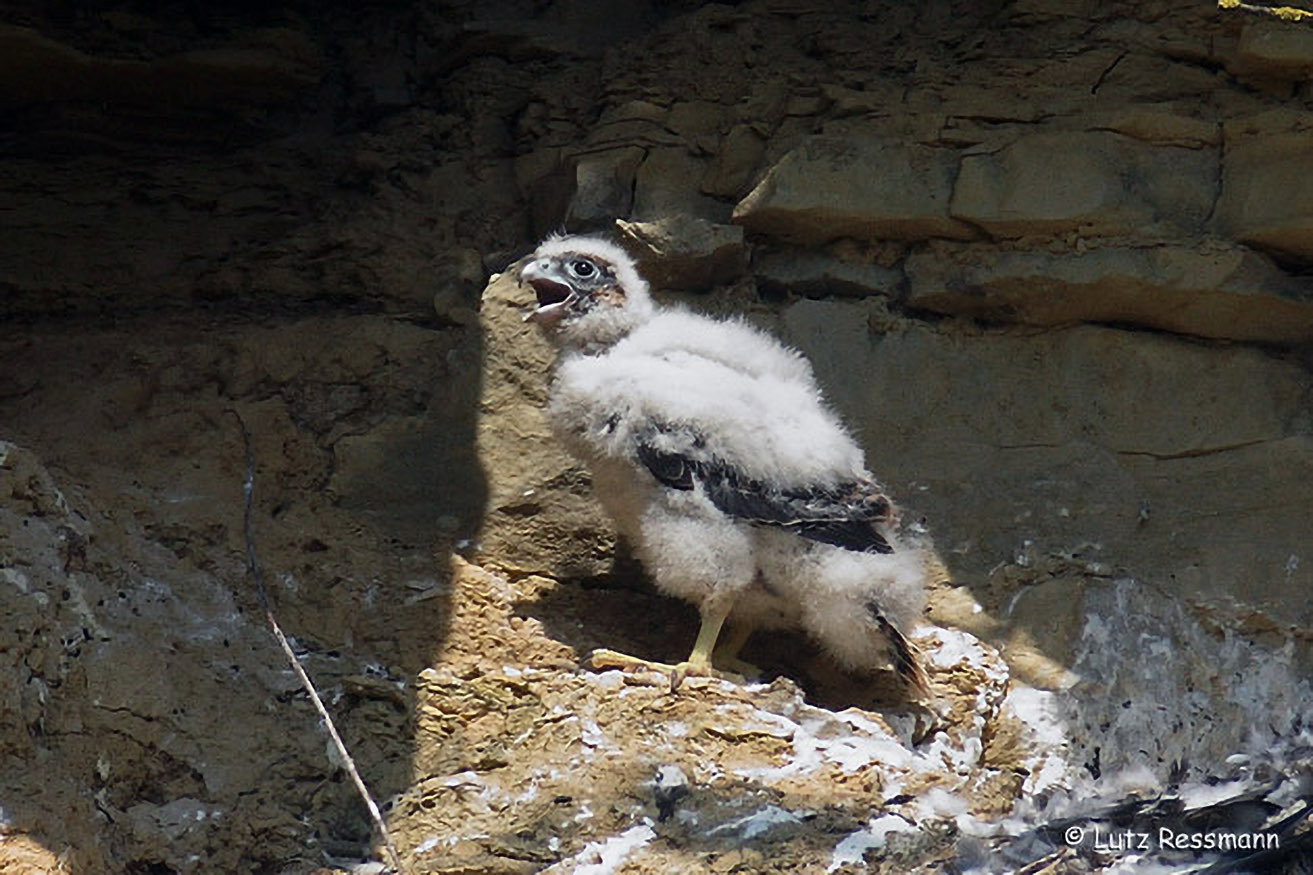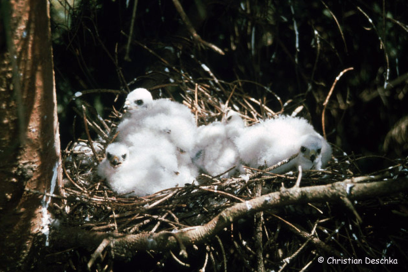 Die Küken werden also fast ausschließlich vom größeren, stärkeren Weibchen erbrütet und anschließend betreut und bewacht. Erst wenn diese rund 3 Wochen alt sind, fliegt auch das Weibchen wieder auf die Jagd.