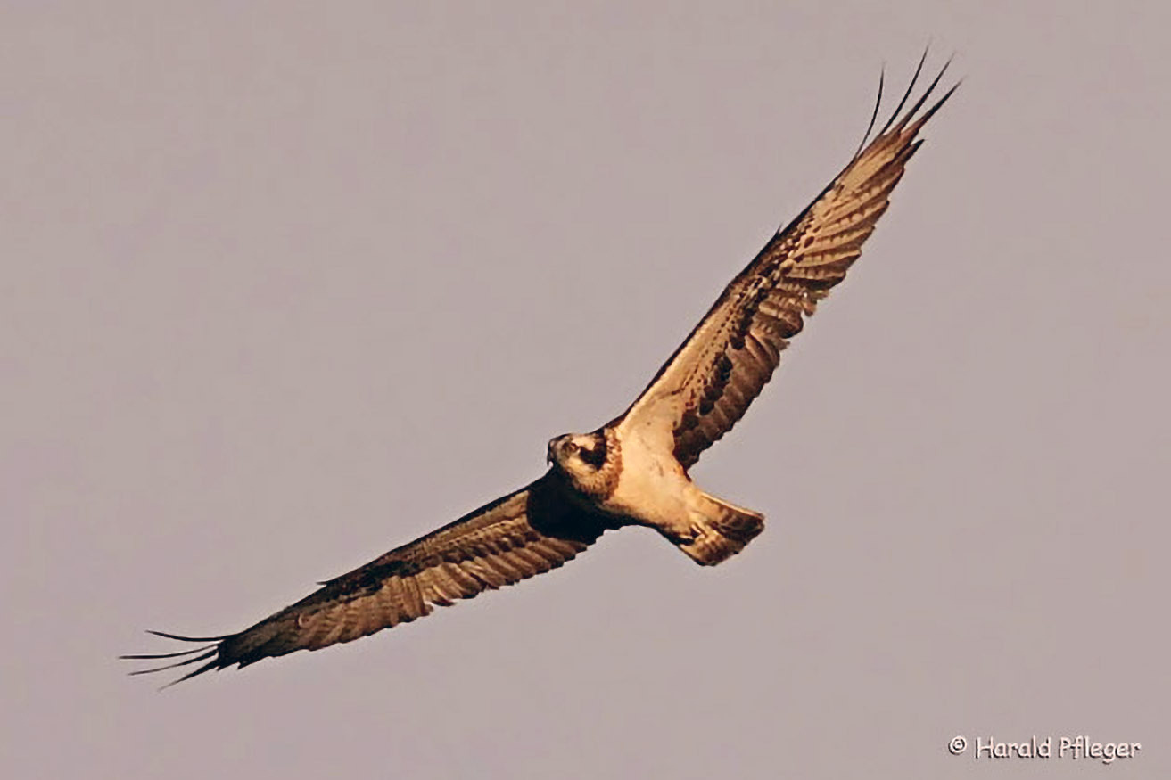 Sehr selten ziehen auch Fischadler durch. Diese seltenen Vögel können sich zwecks Stärkung 1-2 Tage an großen Fischteichen aufhalten.
