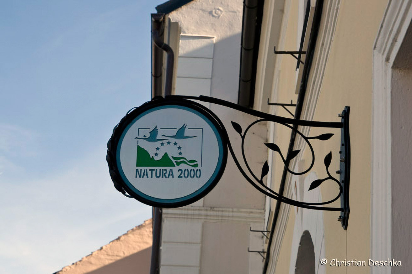 Dort befindet sich nämlich direkt am Ortsplatz ein Infozentrum, das durch ein schmiedeisernes Schild gekennzeichnet ist. Es informiert sowohl über das hiesige NATURA 2000- bzw. Europaschutzgebiet als auch über das Grüne Band.