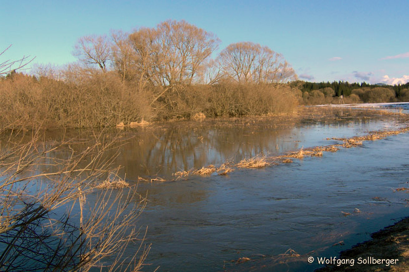 Zur Zeit der Schneeschmelze kommt es regelmäßig zu Überschwemmungen. Diese sind für viele seltenen Pflanzen und Tiere wichtig.
