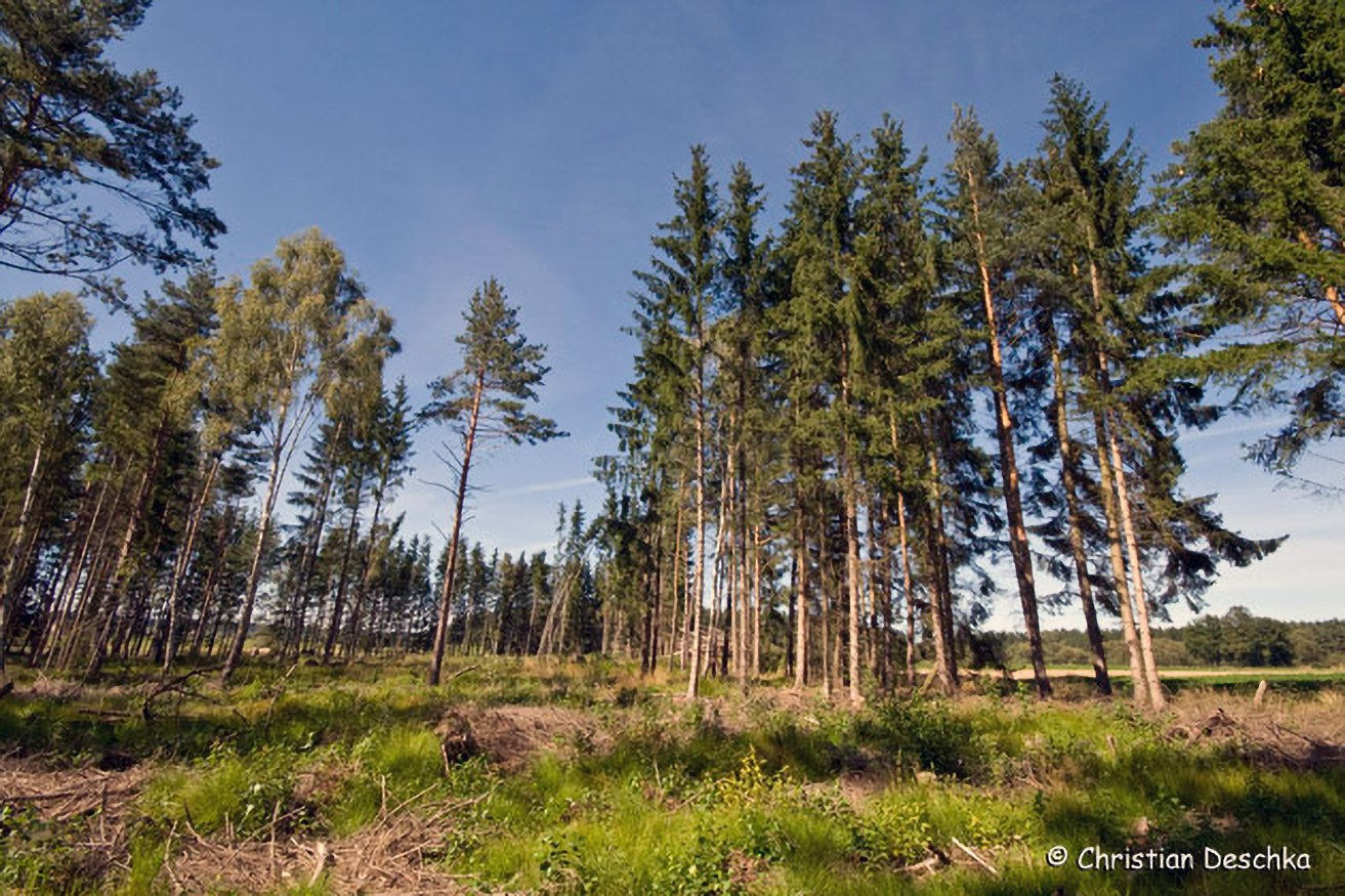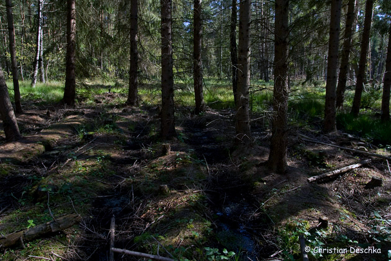 Allerdings blieben vom Moorwald nur kleine naturnahe Reste erhalten. Der Großteil wurde zerstört, indem der Boden mit dem Moorpflug bearbeitet und mit Fichten aufgeforstet wurde.