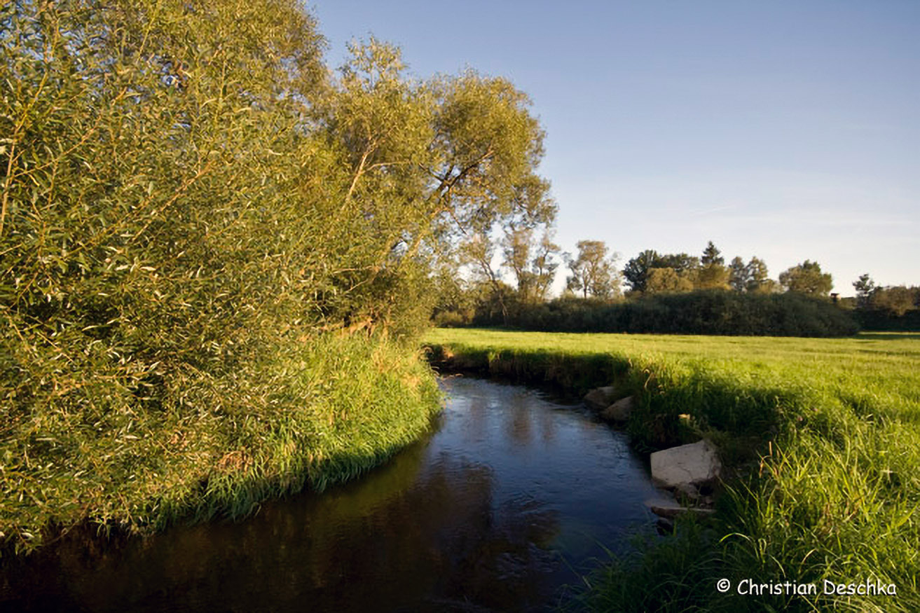 Leider reichen heute Äcker z.T. relativ nahe an den Fluss heran. Dadurch kommt es bei Regenfällen zum Eintrag von Schlamm und Nährstoffen ins Gewässer.