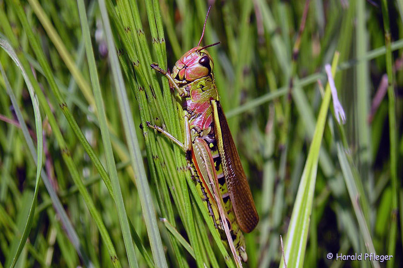 Auch seltene Heuschrecken sind hier beheimatet. Die Sumpfschrecke benötigt recht feuchte Lebensräume und besiedelt die Wiesen an der Maltsch. Dort wird man durch deren "knipsende" Laute auf die bedrohten Grashüpfer aufmerksam.