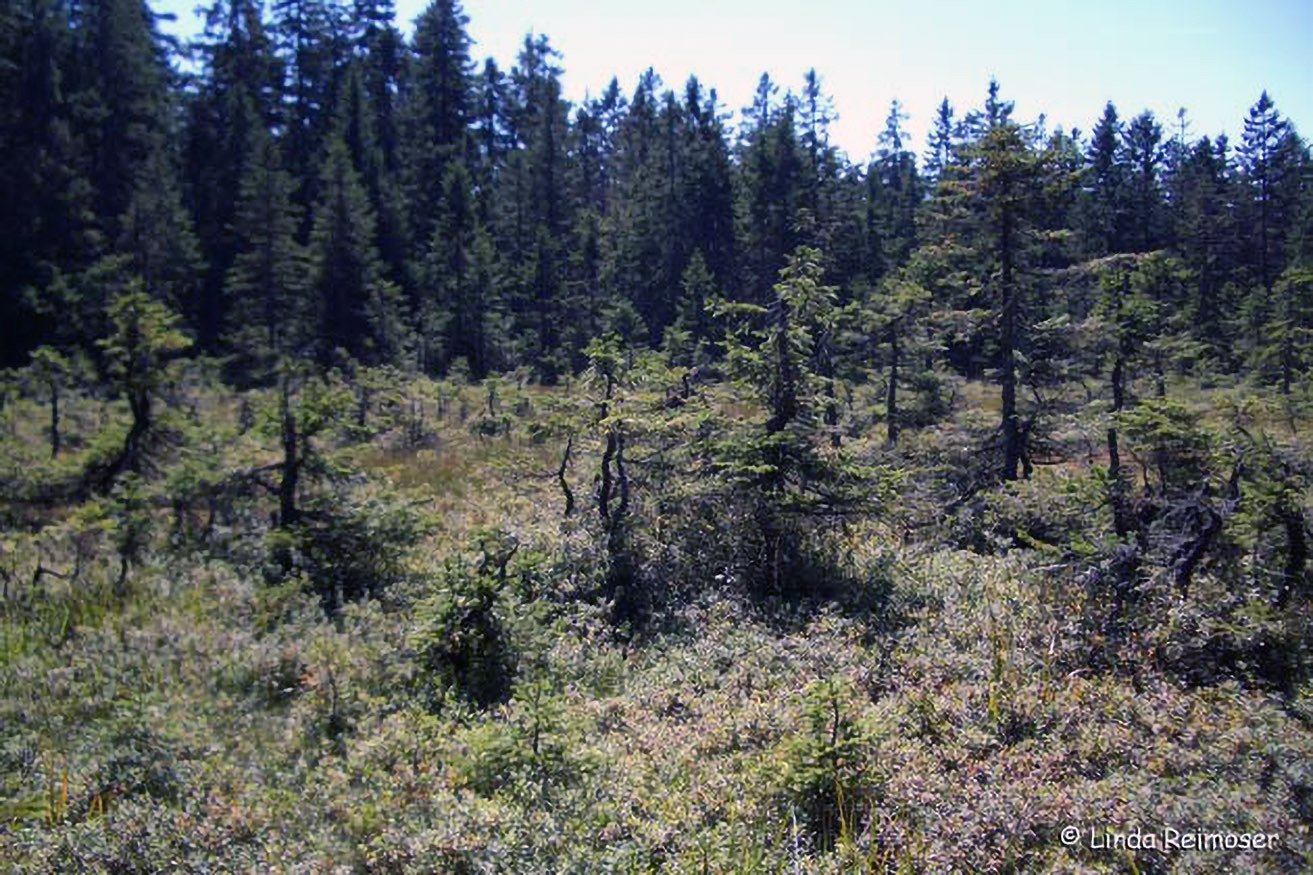In den Böhmerwald-Hochmooren sind Latschen selten zu finden. An ihre Stelle treten Fichten und Moorspirken. Diese Moore erreichen Torfmächtigkeiten von bis zu 4,5 Metern.