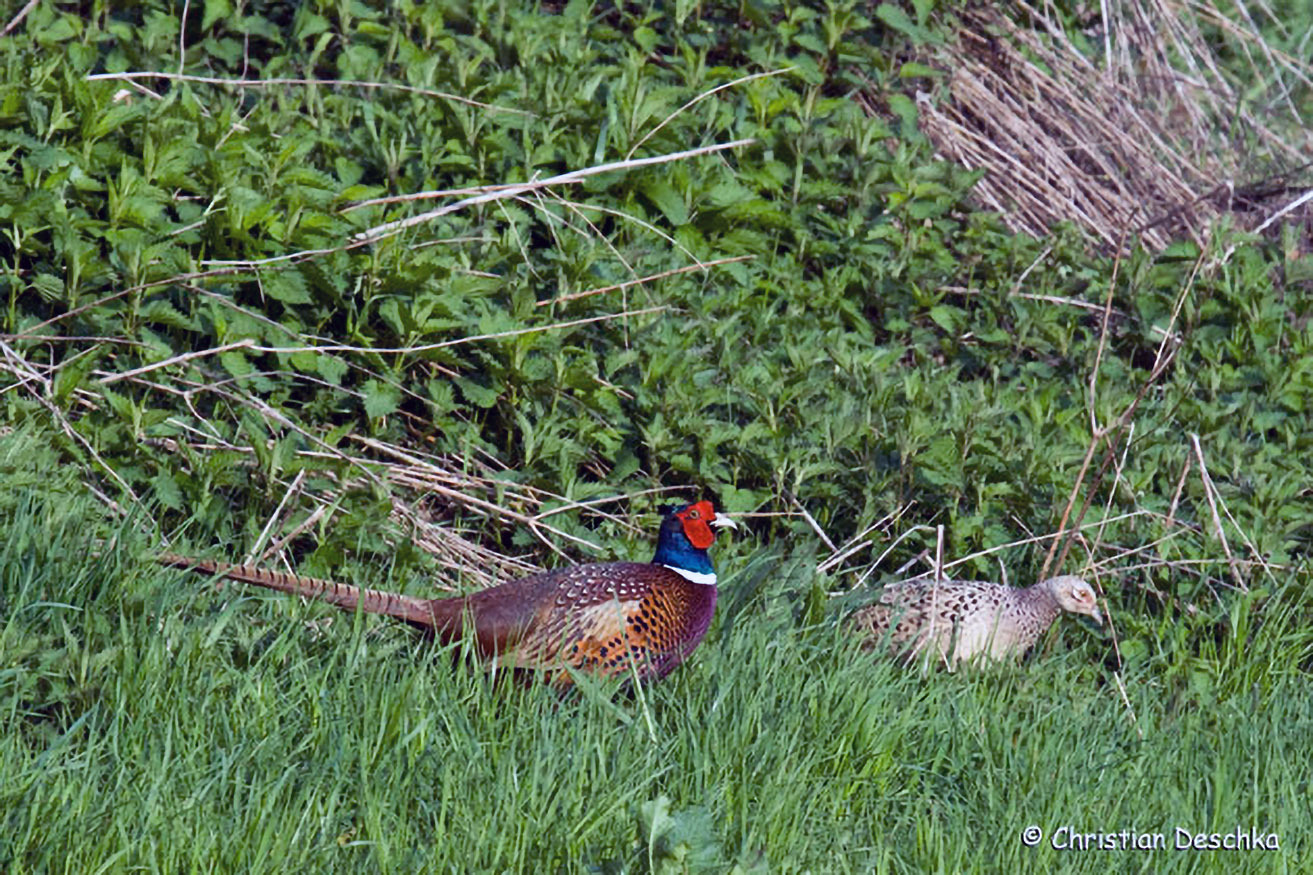 Der Fasan stammt eigentlich aus Asien. Er wurde vom Menschen als Ziervogel und Jagdwild nach Europa gebracht. Im Mühlviertel wurde er von Jägern angesiedelt und ist heute gelegentlich in der Feldflur zu beobachten.