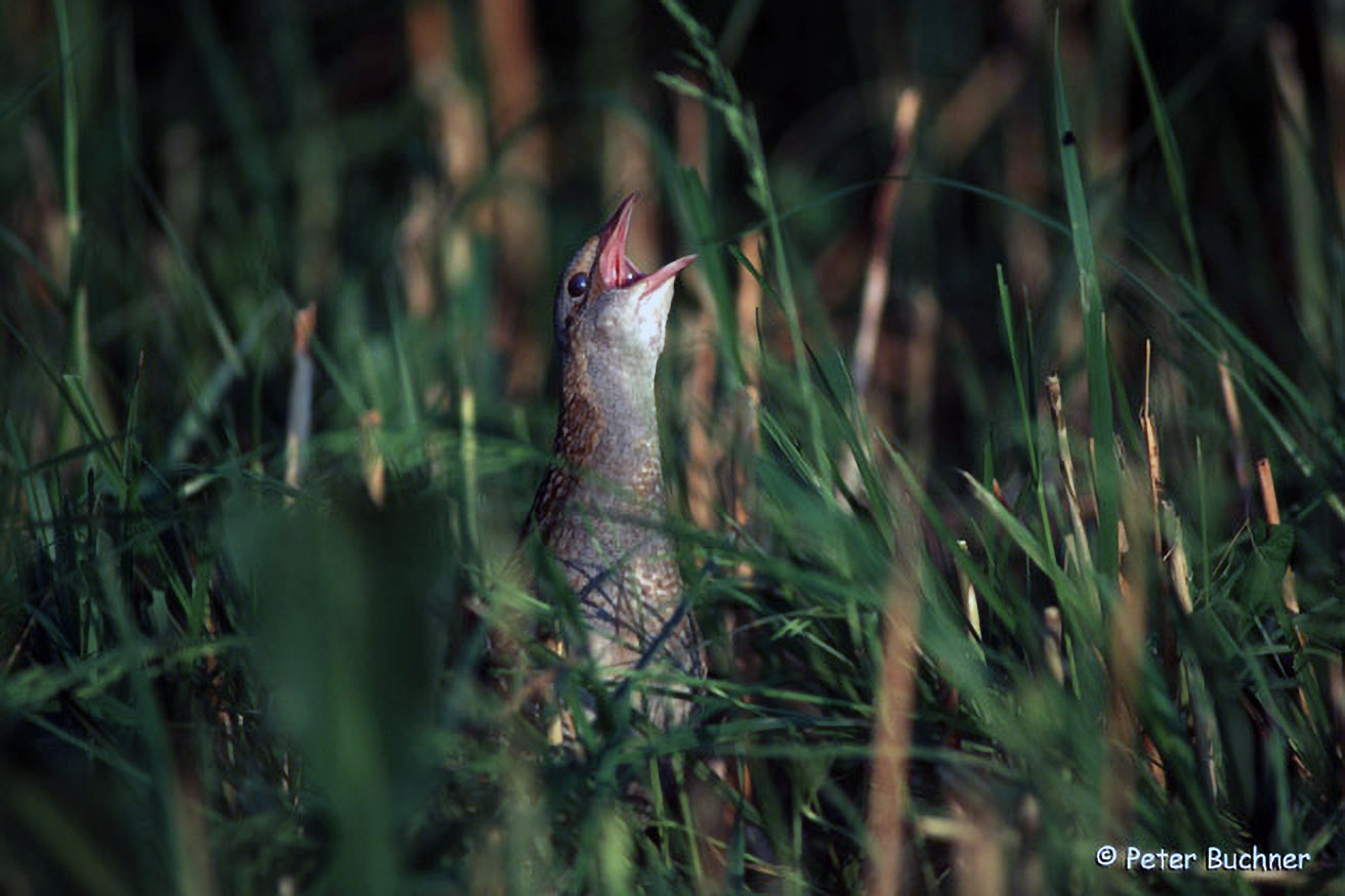 Der Wachtelkönig lebt in Wiesen, die am Boden zwar Platz zum Laufen, nach oben aber viel Deckung bieten. Er ist mit ein paar verbliebenen Brutpaaren einer unserer seltensten Vögel überhaupt.