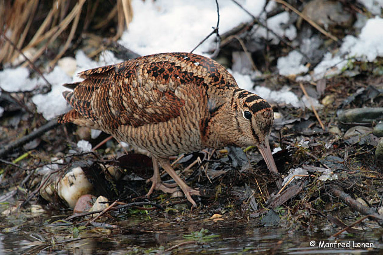 Zurück in den Wald: Dort führt ein unscheinbarer Vogel mit langem Stocherschnabel ein unauffälliges Leben - die Waldschnepfe. Am auffälligsten ist sie beim "Schnepfenstrich" im Frühling.