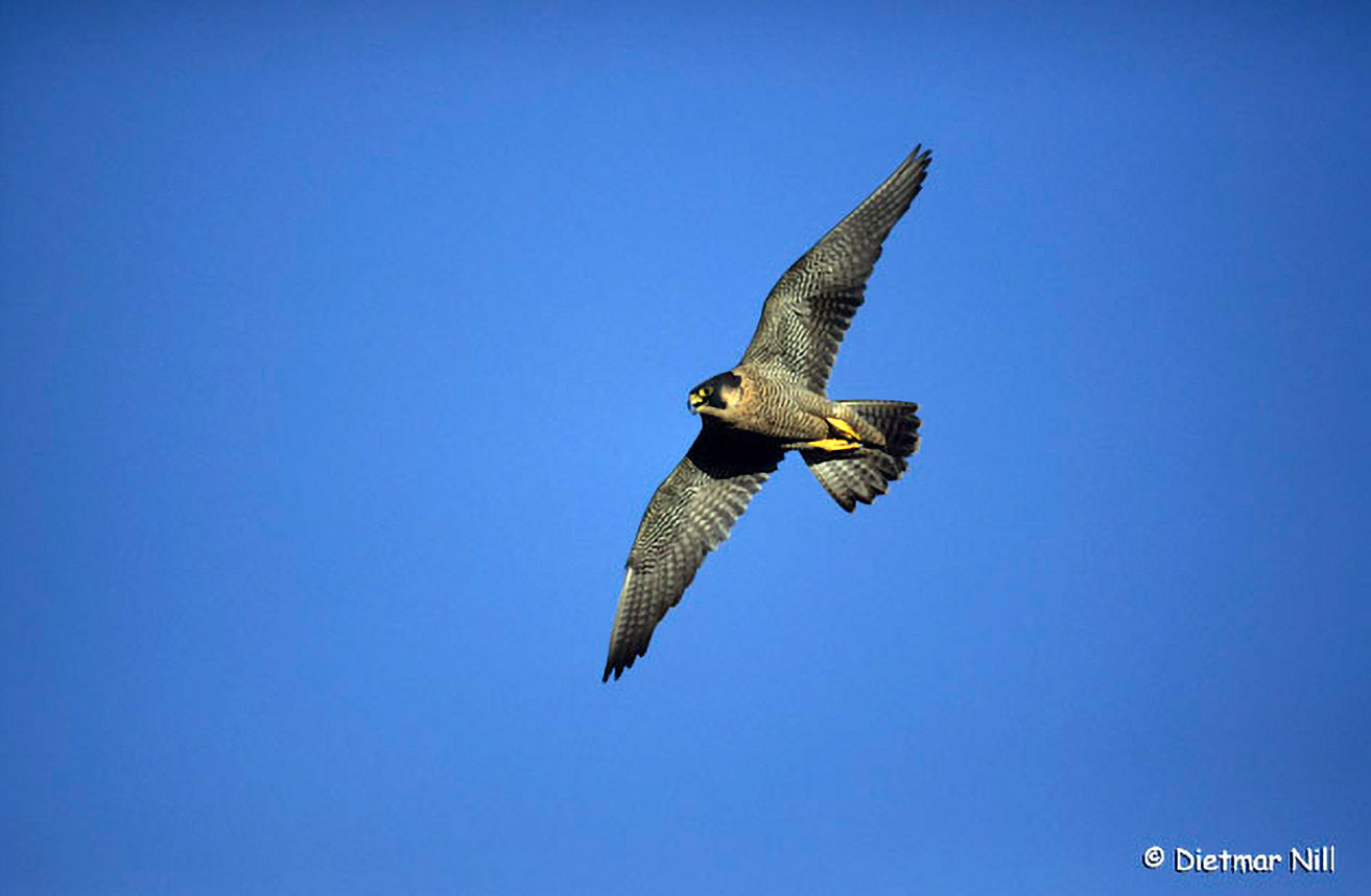 Der große Wanderfalke ist auf das Erbeuten von anderen Vögeln im freien Luftraum spezialisiert. Dieser Großfalke gilt als schnellster Vogel der Welt. Im Mühlviertel ist nur ein Brutplatz bekannt.