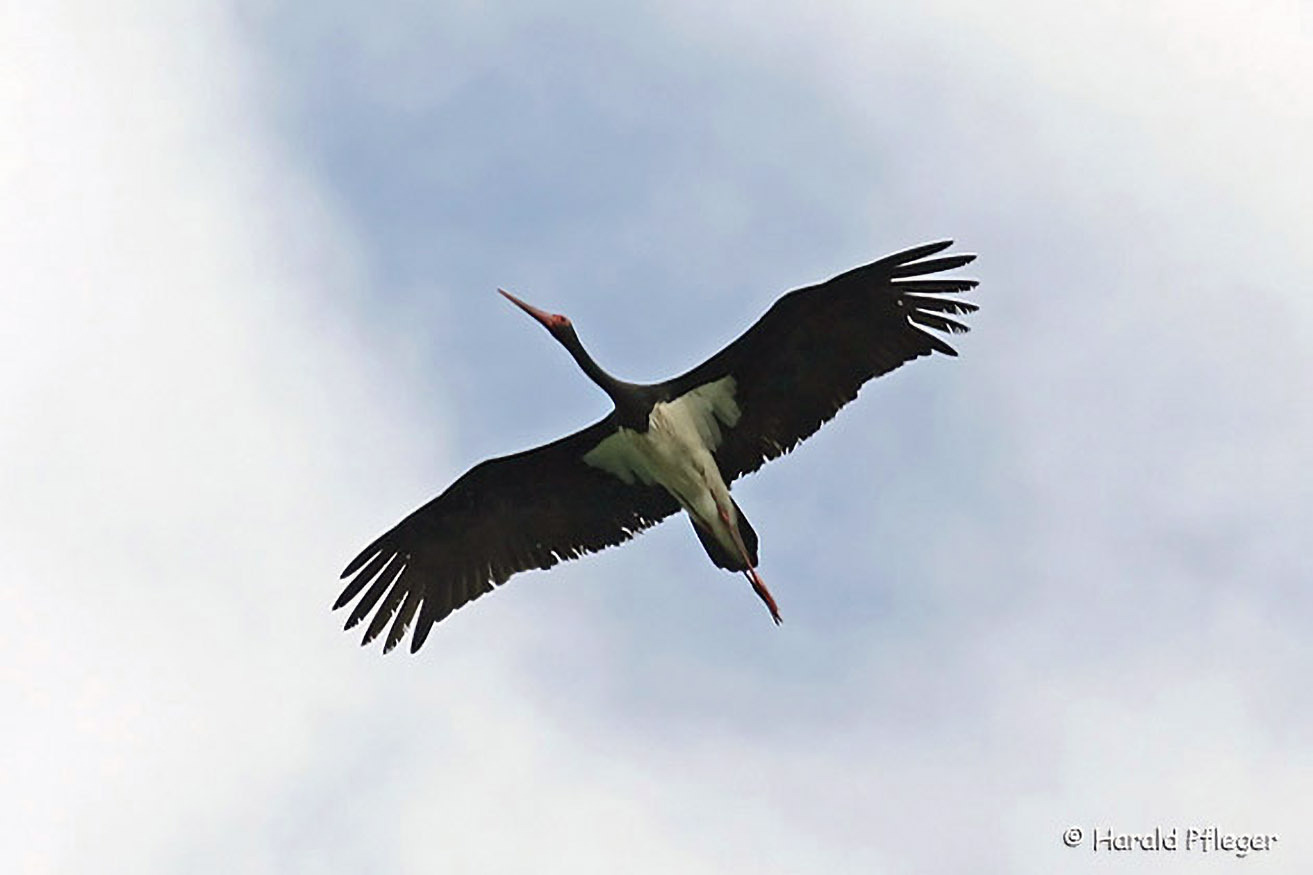 Man soll aber auch ab und zu einen Blick nach oben werfen. In diesem Gebiet kann man nämlich regelmäßig den Schwarzstoch beobachten. Dieser scheue Vetter des Weißstorches brütet in den Hangwäldern der Donau auf Bäumen und Felsen.