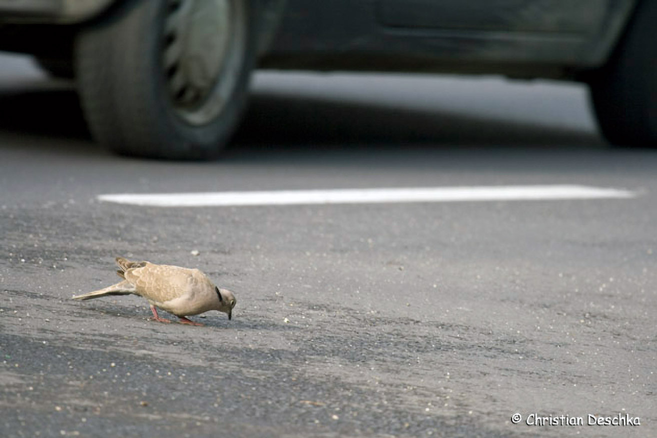 Zur Nahrungssuche ist er gerne in Gärten unterwegs. Auch auf Straßen und Gehsteigen treffen wir ihn an.