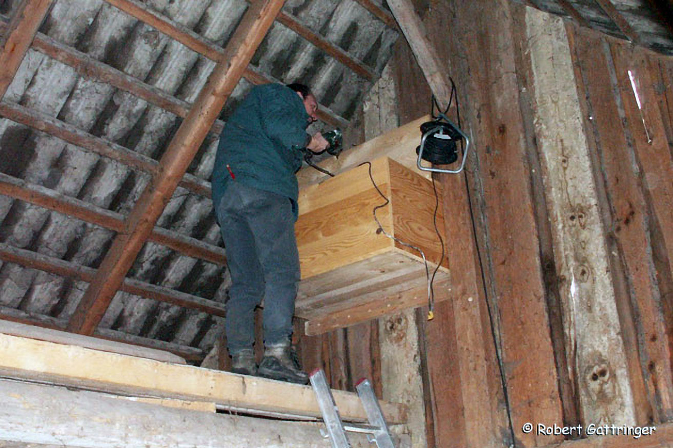 Die vom Aussterben bedrohte Schleiereule wird von der NATURSCHUTZBUND-Regionalgruppe Machland Nord durch Anbringen von Nistkästen an der Innenseite von Hütten und Stadeln gefördert.