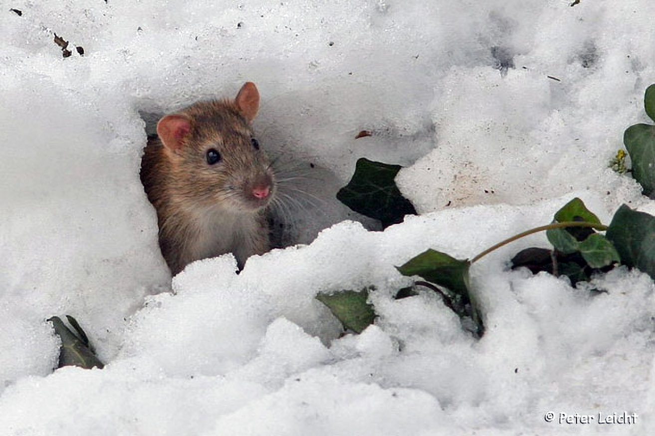 Auch dieser Kulturfolger wird ungern gesehen - die Ratte. Ihr rückt man mit Falle und Gift zu Leibe. Sie lebt recht versteckt. Manchmal kann man sie aber an Mistkübeln oder Vogelhäusern beobachten.