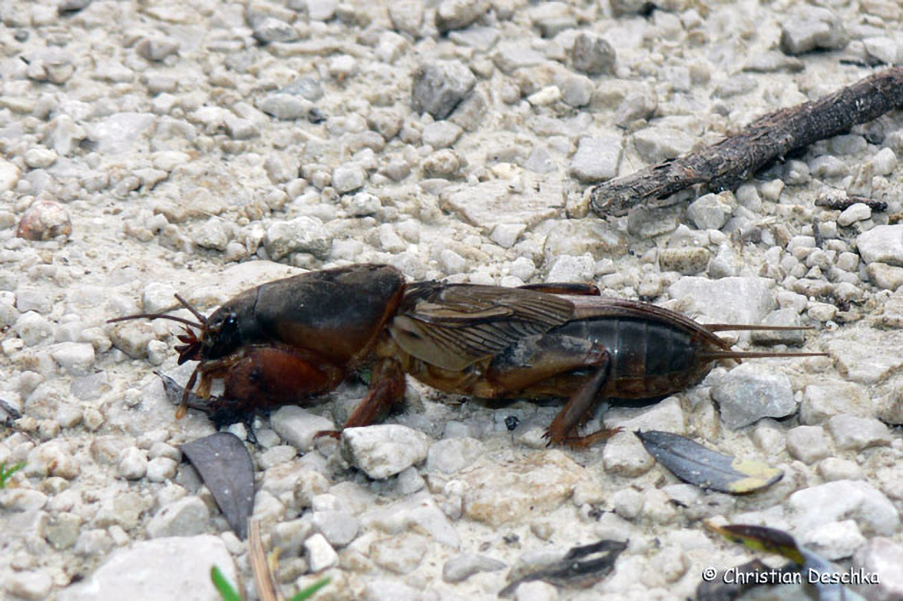 Manchmal erbeuten Eidechsen auch ein Insekt, das bei Gartenbesitzern ein gefürchteter Schädling ist - die Maulwurfsgrille. Diese frisst Wurzeln und führt zum Verwelken von Gemüse- und Zierpflanzen.