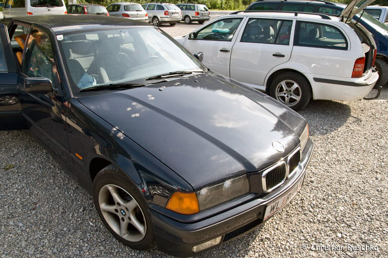 Marderspuren sieht man auch regelmäßig auf im Freien parkenden Autos. Sogar Motorräume werden regelmäßig als Unterschlupf genutzt. Nicht selten beißen Steinmarder dabei in diverse Schläuche und verursachen damit Defekte und teure Reparaturen.