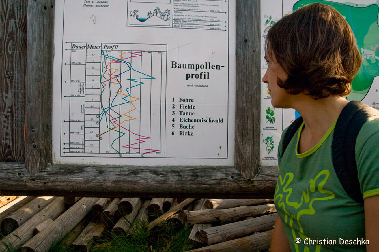 ... Pollen der umliegenden Vegetation eingeschlossen. Da die Torfschicht rund einen Millimeter pro Jahr wächst, gibt ein Bohrkehr aus dem rund 10 m mächtigen Torfkörper Auskunft über die Pflanzenwelt der letzten 10.000 Jahre!
