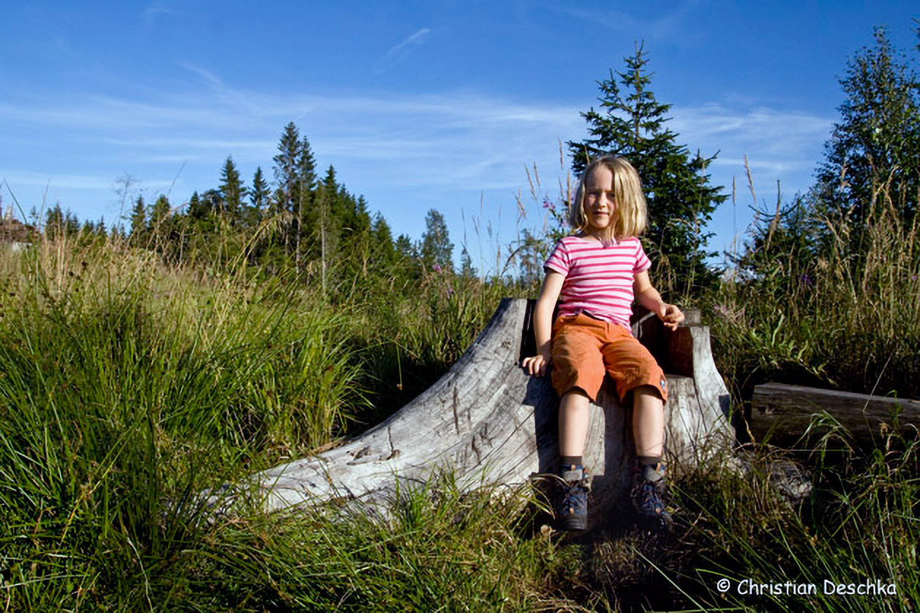 An einer Stelle mit dem originellen Flurnamen "Kuawaumpen" laden Baumstümpfe als Sitzgelegenheit zu einer weiteren Pause ein.