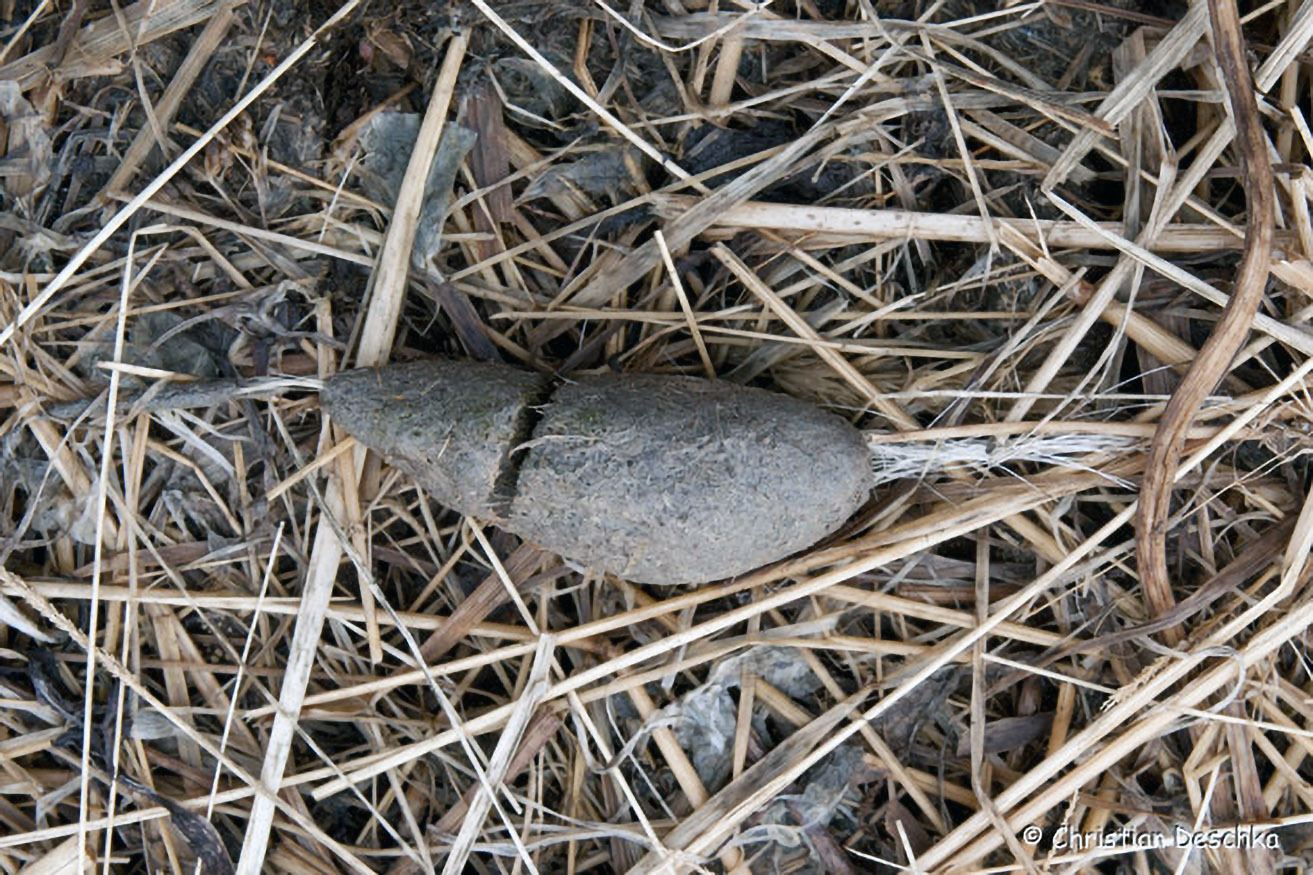 Die Losung des Fuchses kann sehr unterschiedlich aussehen. Die gewellten Rehhaare verraten, dass der Fuchs hier wohl Fallwild gefressen hat.