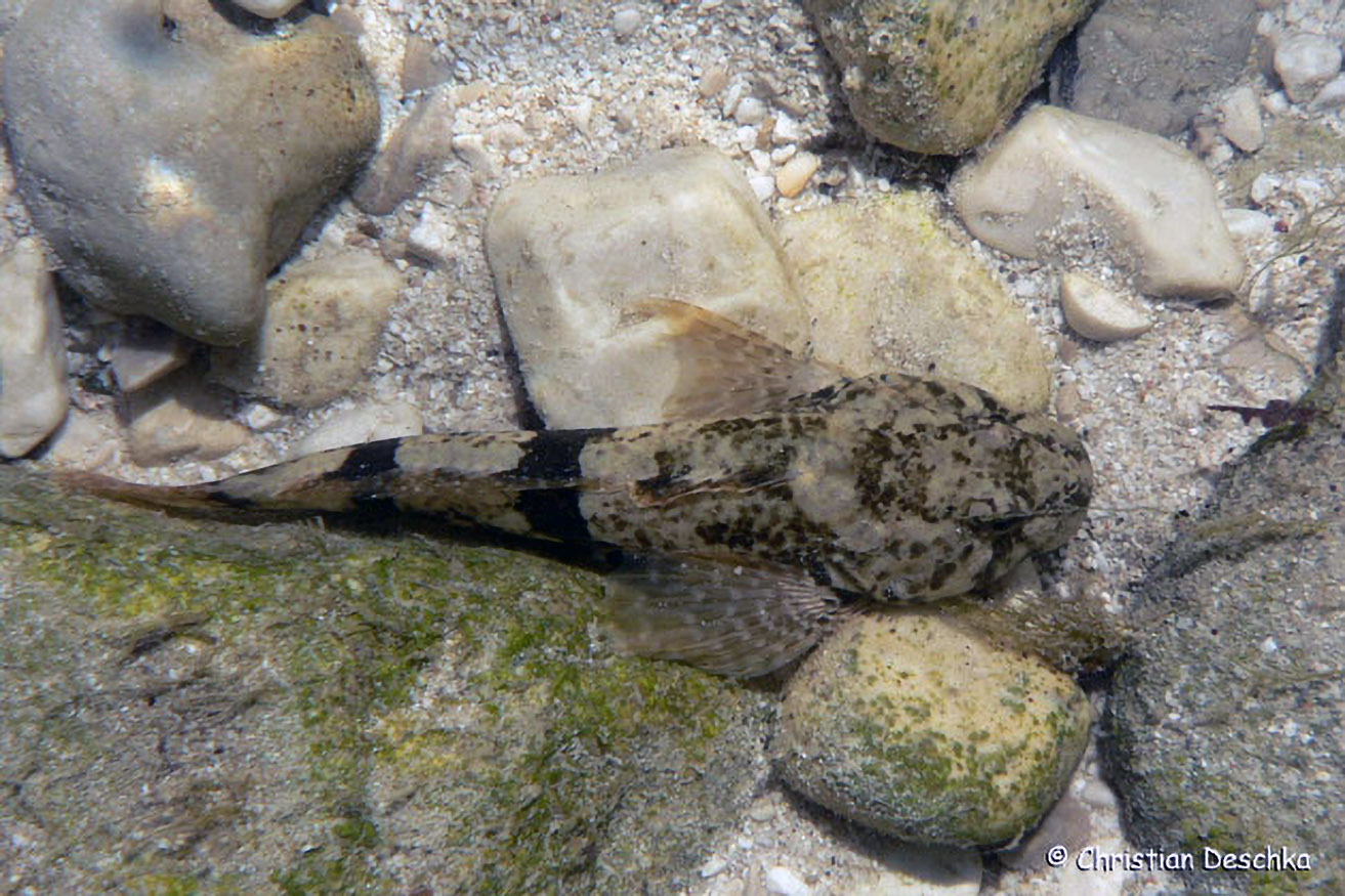 Die Jagdweise des zu den Raubtieren zählenden Waschbären ist eher ein Stöbern und Sammeln. Oft stehen Regenwürmer und andere Wirbellose am Speiseplan. In Gewässern können sogar Fische wie diese Koppe erbeutet werden.