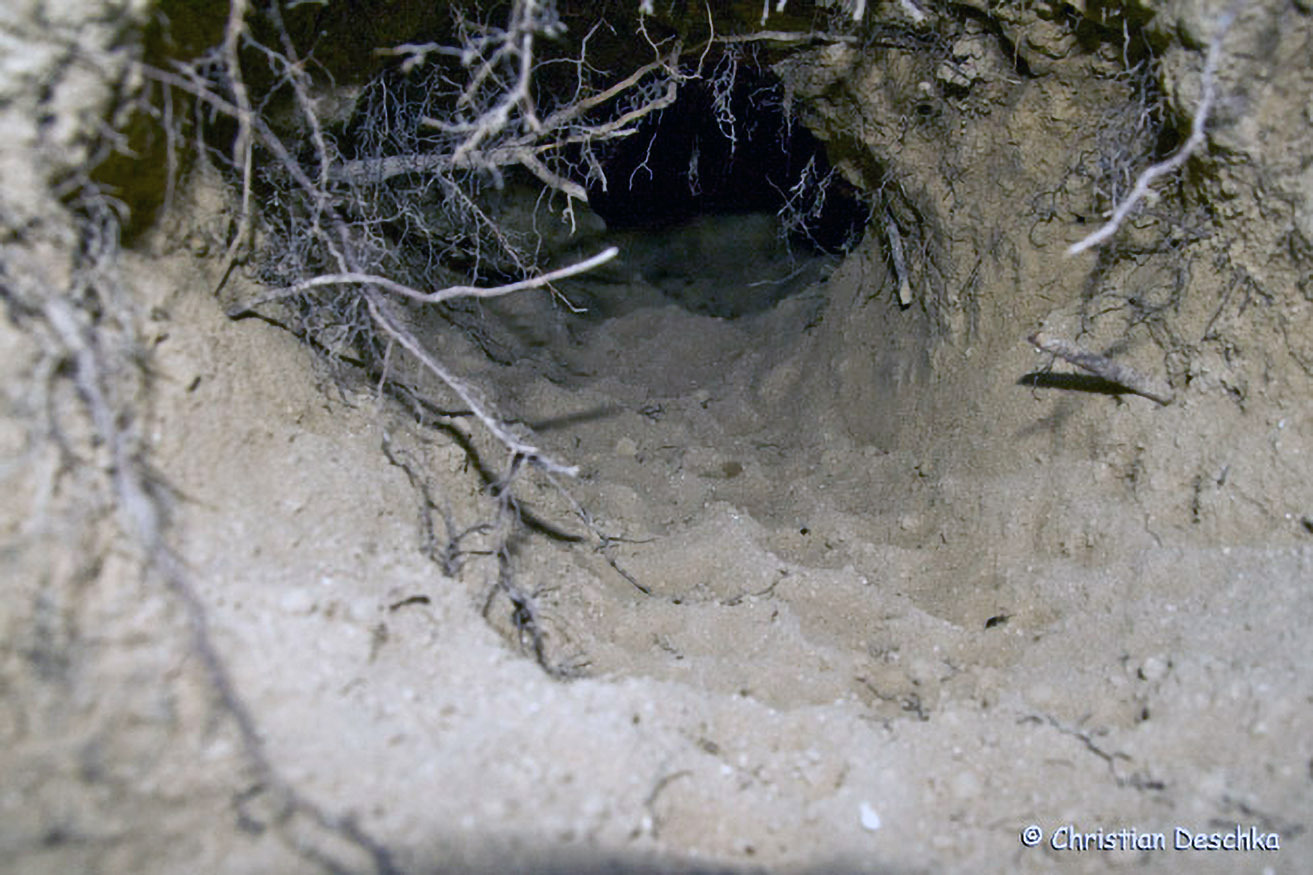 Da gelegentlich natürliche Feinde eindringen, gibt es in jedem Bau auch Fluchtröhren, die von außen oft schwer zu entdecken sind.